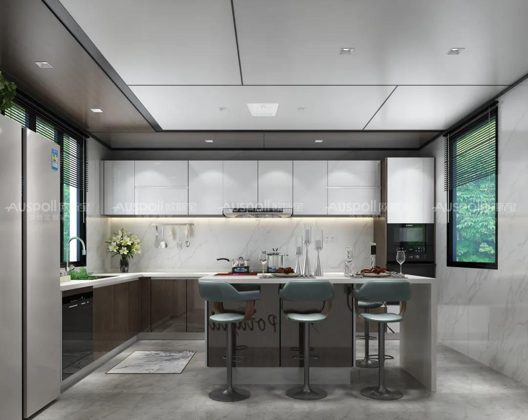 | 首先廚房吊頂一定得做好,考慮到防潮、抗油污、耐腐蝕、易清理這幾點(diǎn)。且廚房溫度較高,頂面必須要耐高溫的材質(zhì)。 |