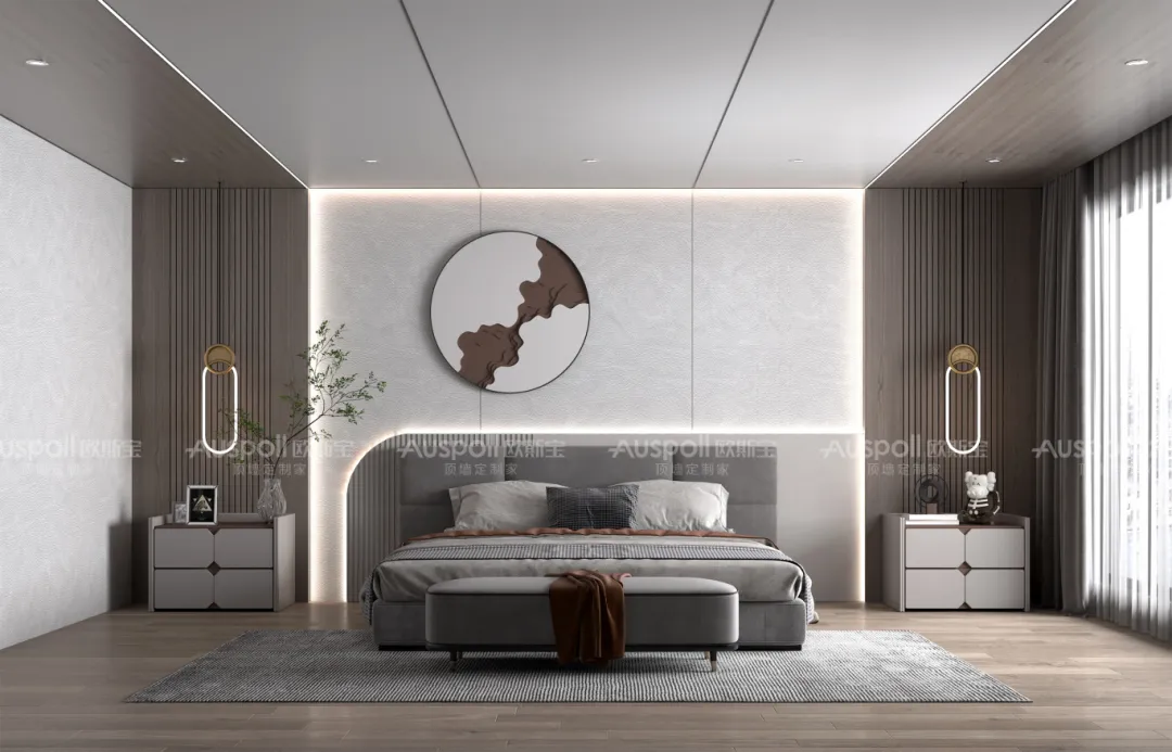 · 材質(zhì)運(yùn)用:選擇質(zhì)感細(xì)膩、觸感溫和的木飾面,歐斯寶墻板,注重健康環(huán)保,優(yōu)選原生純木質(zhì)纖維,安裝方便快捷,既裝既住 。