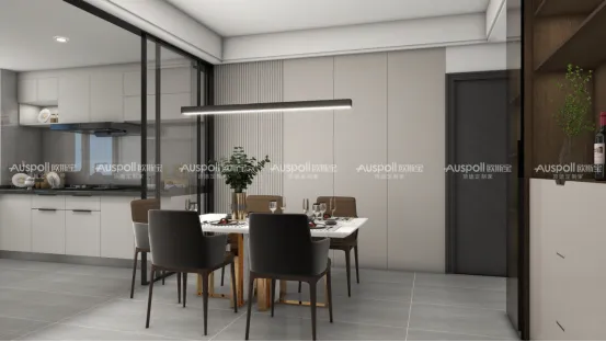 頂墻一體化,低調(diào)不失雅致,質(zhì)感兼具品味,通過(guò)線性燈來(lái)照亮空間,讓餐廳更具延伸感,營(yíng)造出干凈寬敞,舒適自然的用餐空間。