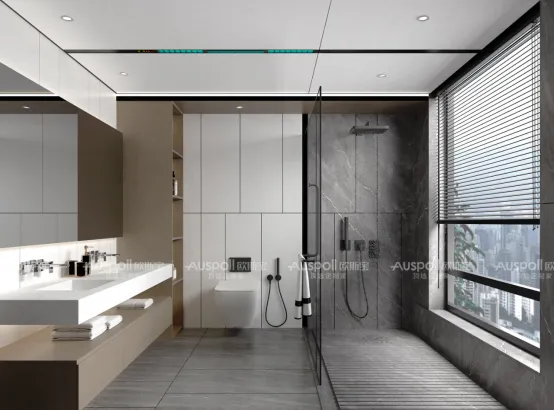 灰色與米色交織融合,搭配極簡(jiǎn)線型浴霸,用極素至簡(jiǎn)的設(shè)計(jì)語(yǔ)言,打造簡(jiǎn)潔明凈的空間觀感,彰顯時(shí)尚美感。