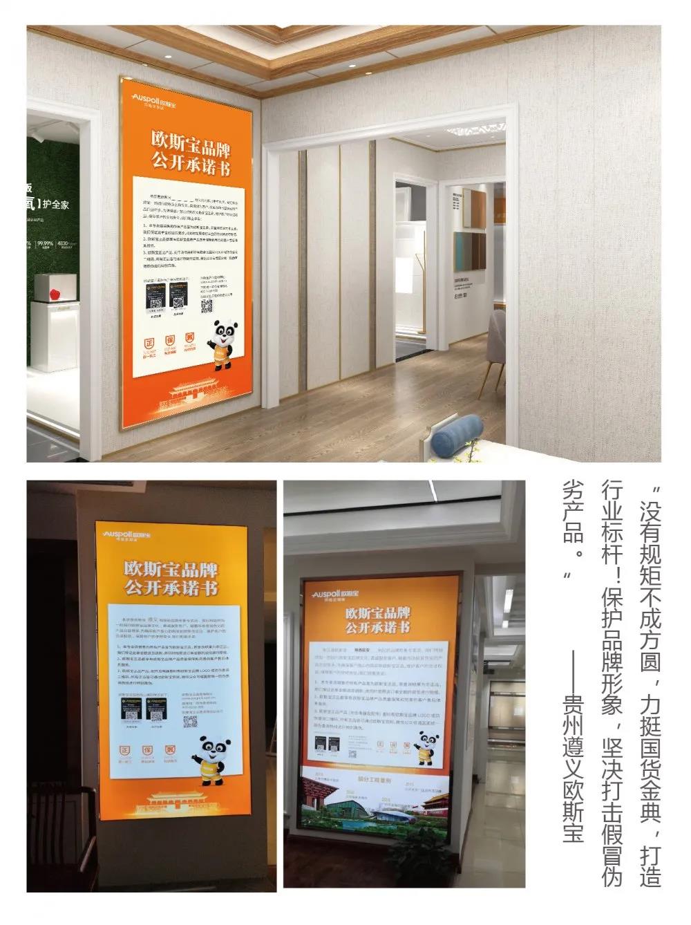 ▲部分終端門(mén)店已在店面懸掛‘歐斯寶品牌公開(kāi)承諾書(shū)’